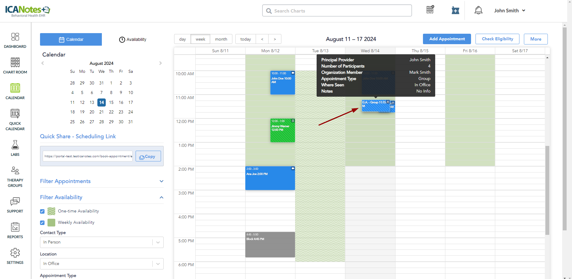 Overview In the Therapy Group feature, certain details can be recorded from either the Calendar or the Therapy Group module. These details include adding participants to the appointment/session, removing participants from the appointment/session, and ...