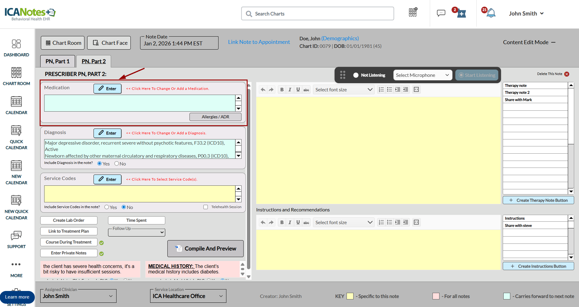 Applies to: Prescribers who create or manage prescriptions in ICANotes+. Follow these steps to add the PA number to a prescription: