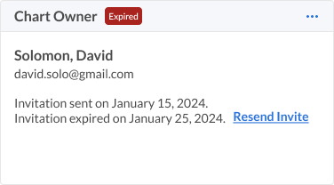 If the invitation has been sent and the client has not accepted within 7 days, the Chart Owner box will display the Expired tag, as depicted in the screen below. Upon clicking three dots, you will see the following options.