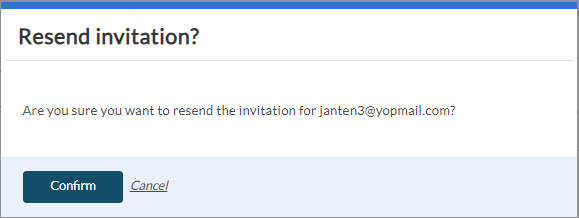 Clicking the Resend Invite link will prompt a confirmation message to appear, as shown below: