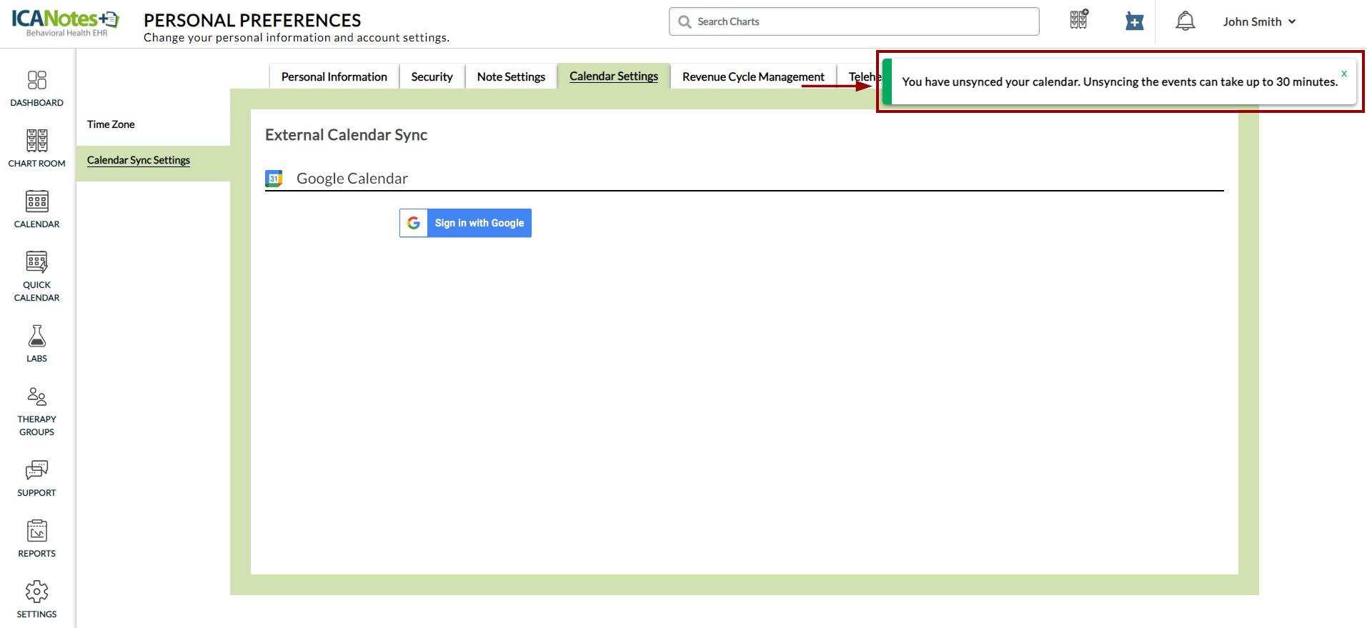 This Knowledge Base article provides instructions for fixing the Google Calendar sync feature in ICANotes+ when it stops working. If you haven't enabled Google Calendar sync yet, please refer to this article to get started: How to Sync Google Calendar with the ICANotes+ Calendar