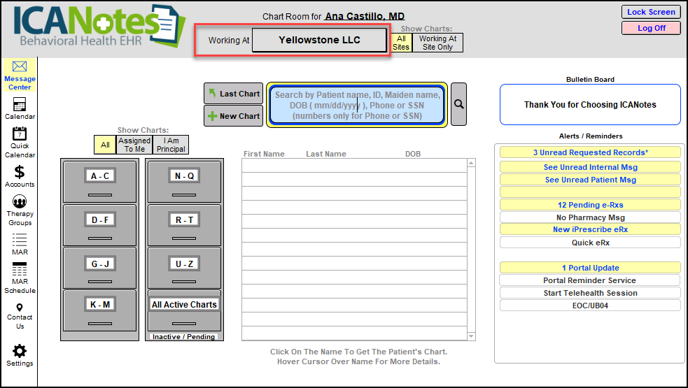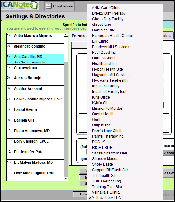 Restrict Search by Site from Chart Room Restrict Search by Site from Chart Room Instructions If your group has two or more sites and you have individuals in your group who work exclusively at one location, Security Administrators can restrict the ...