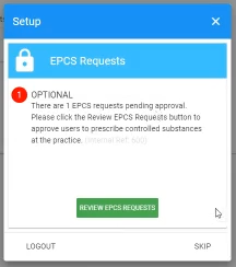 When a new prescriber completes eRx registration and ID Proofing, a staff admin must be given eRx permissions to approve their EPCS request. This will enable the prescriber to send controlled prescriptions. The approval is only necessary one time per prescriber. Prescribers will not be able to send controlled prescriptions until this step has been completed.