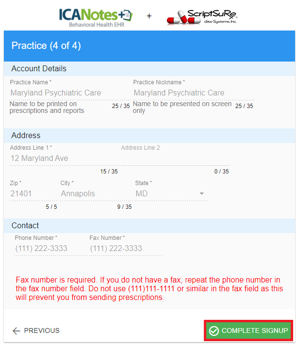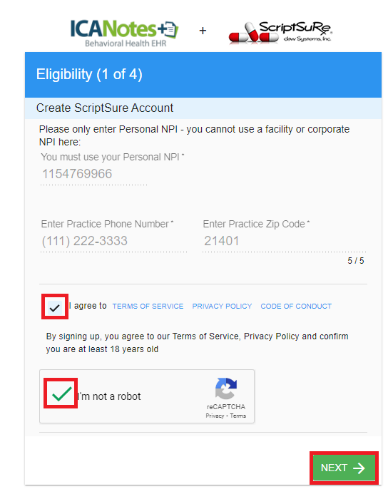 ScriptSure is partnered with ID.me for the identity verification process. ID.me’s DEA‐compliant identity verification allows healthcare providers to verify their identity one‐time and create credentials they can use to securely issue electronic prescriptions for controlled substances from ICANotes+ via ScriptSure.