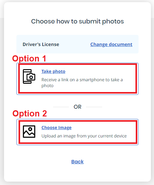 Choose verification method, such as a driver's license: