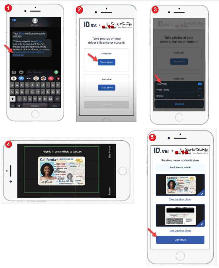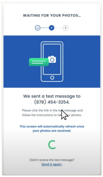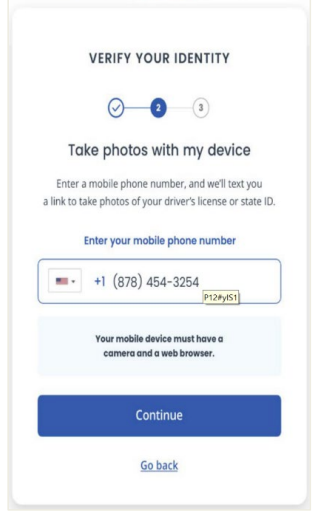 Option 1: Take a photo with my device: This option will allow you to take a picture with your phone. a. Enter your cell phone number and click “Continue”. b. Then check your cell phone for a text message. (see next page for next steps)