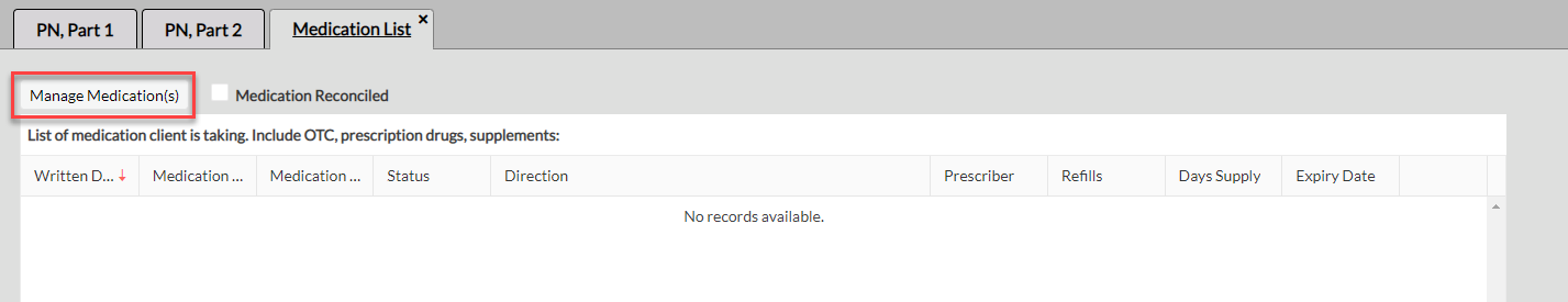 You will see a Medication List tab. Click the Manage Medication(s) button to launch into the eRx module.