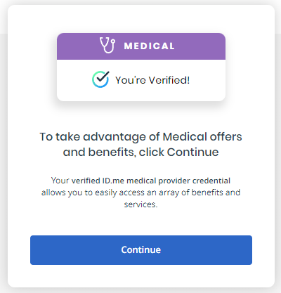 If verification is successful, you will see a "You're Verified" message and will need to follow on‐screen prompts to continue to the next step.