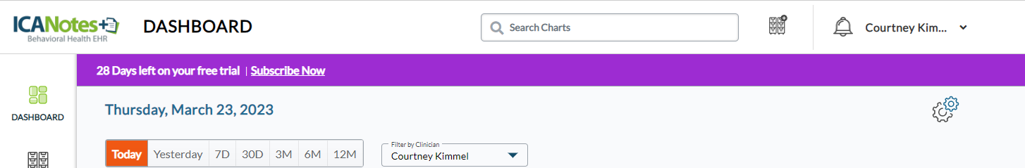 The practice owner must subscribe using the Subscribe Now button in the purple banner displayed in the Dashboard. This guide will walk you through how to convert your trial to a paid subscription.