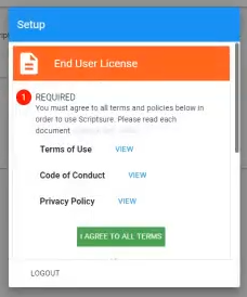 You will be presented with two back to back prompts. First, review and agree to the End User License terms and policies. Next, review the access request for the staff administrator.
