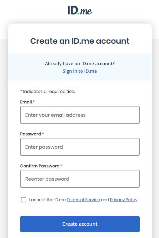IMPORTANT: If you already have an ID.me account, simply sign in to your existing account on this page.