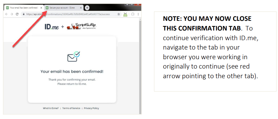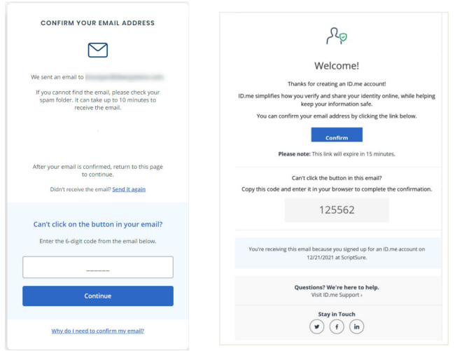 Note: If you signed into your existing ID.me account, you will not be required to perform email confirmation.