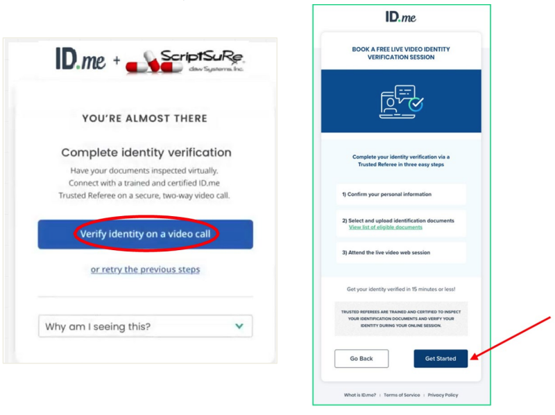 Upon completing your ScriptSure set up, you will be brought to the ID.me website to completed identity proofing.