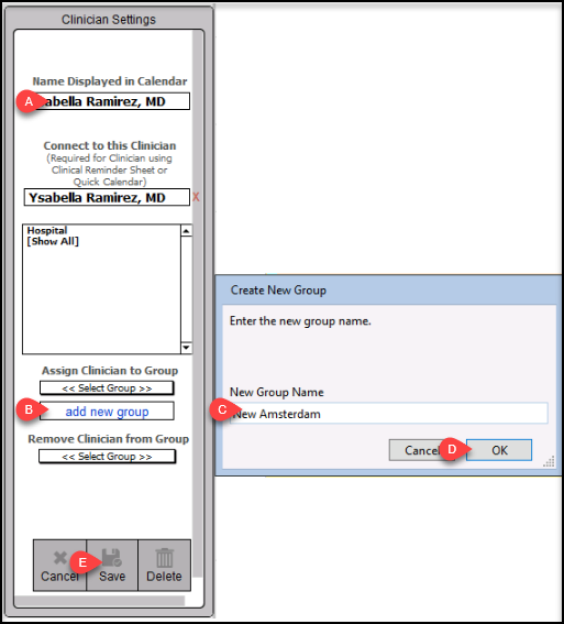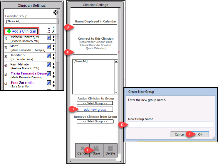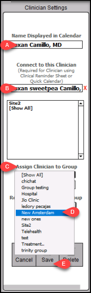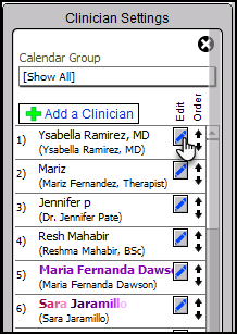 4. You can edit any existing clinician names by clicking the