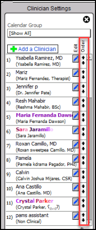 10. When done adding the provider locations, arrange the calendar so that the name of the provider line up (optional) by using the arrows by the name to move the clinician up or down.