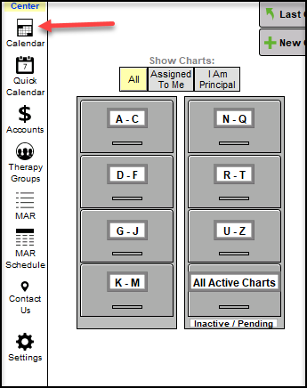 1. From the Chart Room, click on the Calendar button.