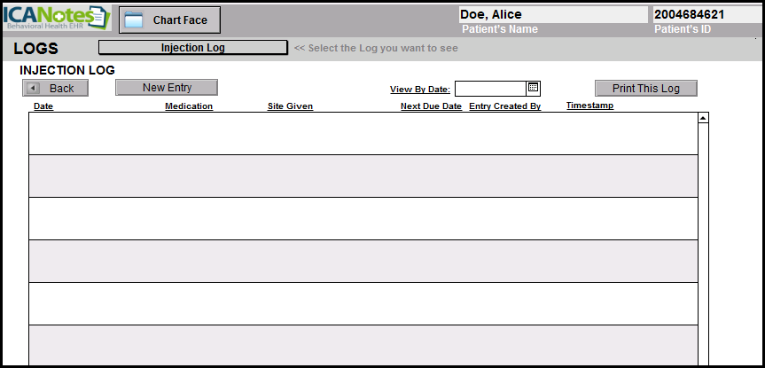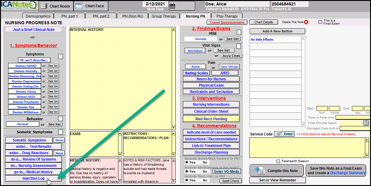 Alternatively, you can access the Injection Log from a Nursing Progress Note.