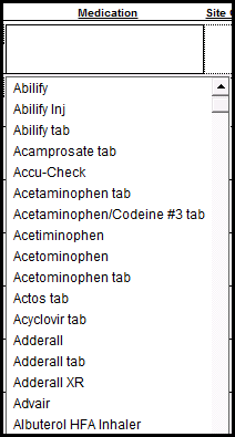 6. The Medication field populates with a dropdown menu or you can click into the field to free text the name.