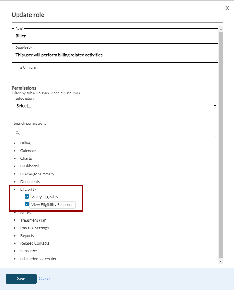 Only the authorized users can verify insurance eligibility for the clients. The practice administrator must assign permission to authorized users to verify the eligibility.