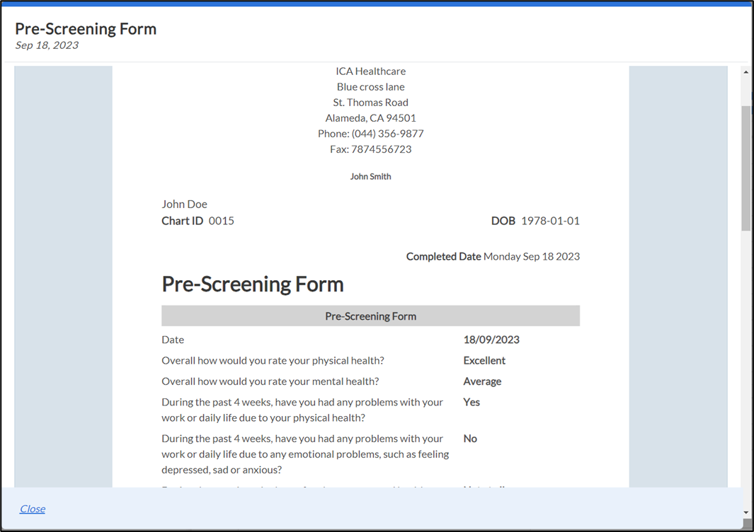 ** Practices have the option to collaborate with our customer support team to provide pre-screening form details, and we will tailor the pre-screening form configuration to suit the specific requirements of each practice.