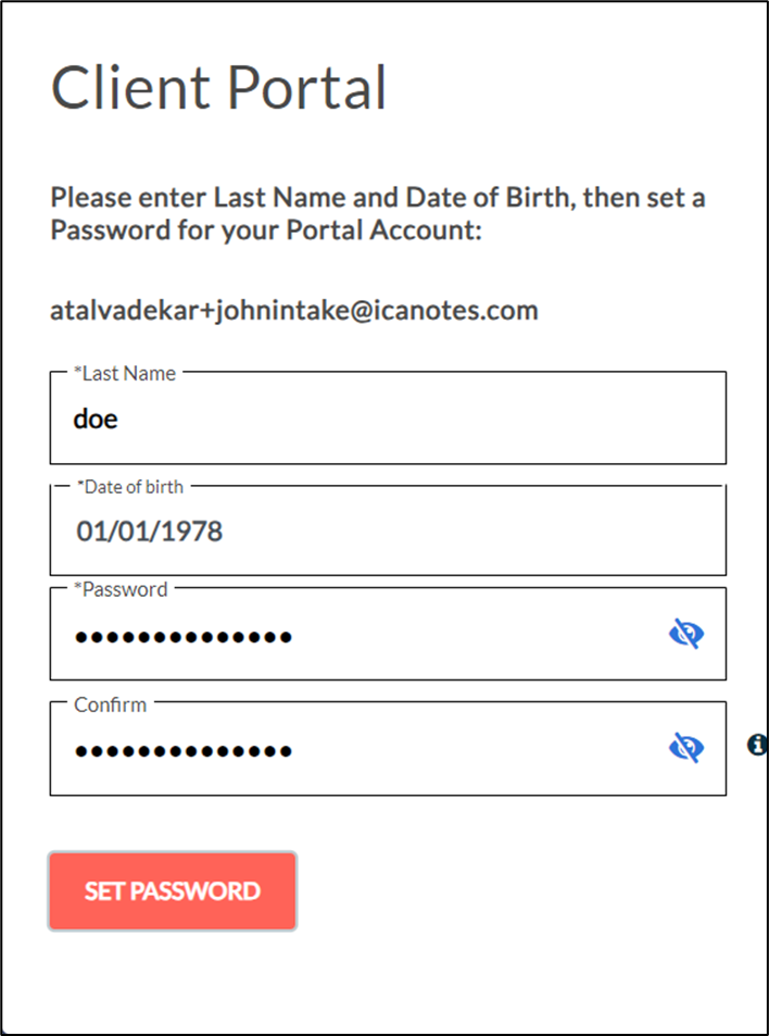 19. The client will have to provide the last name and the date of birth to create a portal account. Once they fill out the details, they can set the desired password.