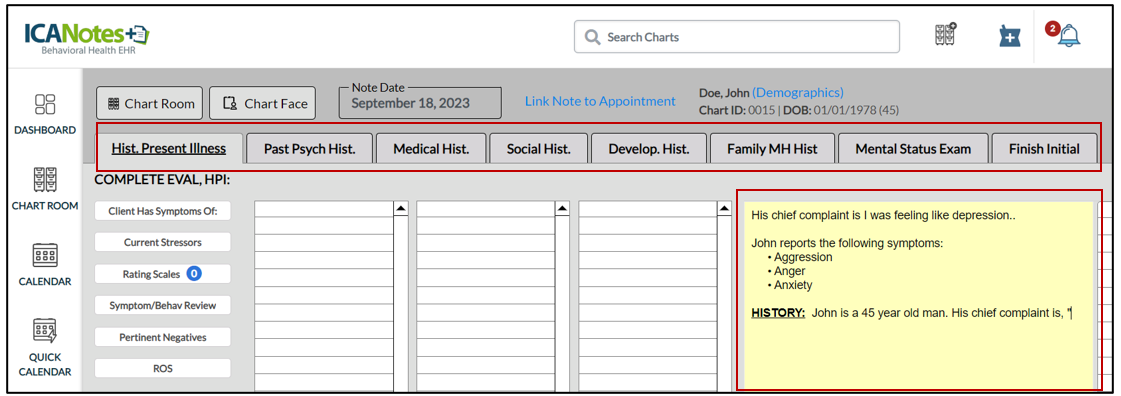 This knowledgebase article guides you to the workflow for the standard intake form that you can configure for your new / returning clients. We can configure the pre-screening form for your clients as per your practice needs. When they visit your corporate website, they can answer the questions that we have configured for your practice in the pre-screening form. When they fill out pre-screening form details, you will receive a notification in ICANotes plus. When you confirm the client’s appointment, you can send the standard intake form that has been configured for them. The client will then receive an email to complete the standard intake form. Once they fill out the intake form, you will again receive a notification in ICANotes plus. You can then complete the evaluation process and locate that the questions that the clients have answered are automatically populated in the respective tabs in Progress Note.