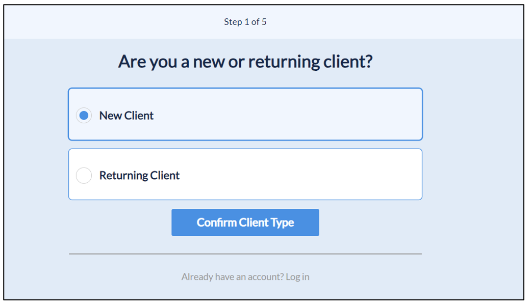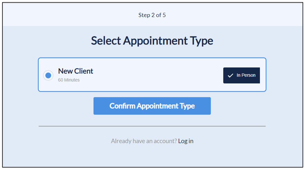 7. The new clients will select this option and click the Confirm Appointment Type button.