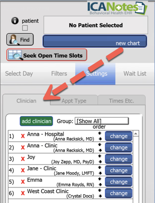 2. The default tab under Settings is the Clinician tab, which is where you will be working.