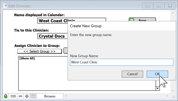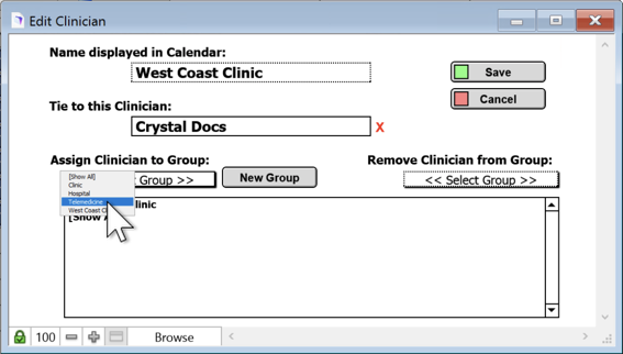 8. You can add clinicians to multiple groups in this manner, and you can add clinicians to an existing group by hitting the "Assign Clinician to Group" dropdown as seen above.