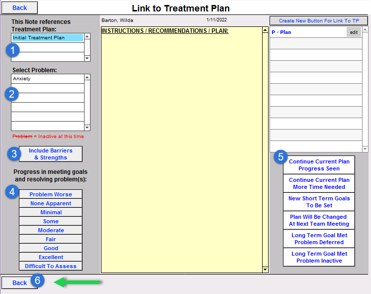 Each Link to Treatment Plan button leads to a screen that looks like this:
