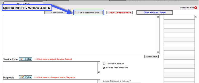 Within ICANotes, you are able to link Treatment Plans directly to the note.