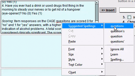 If you find typos as you go through your work, easily correct them by right-clicking with your mouse over the misspelled word, then picking from the available Suggested Spellings to correct the typo. Or you can free-text the corrected text.