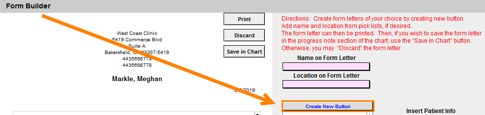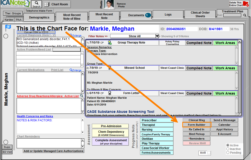 Starting from a patient’s Chart Face, go to Form Builder