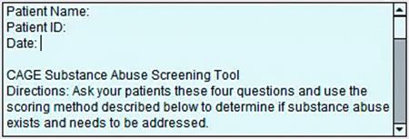 Once you’ve got your assessment or form text entered, you may want to test your custom button. Click to go back to your note, then click on your custom button to populate it in the note