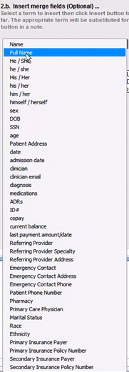 From step 2b, click in the dropdown box to choose from the list of merge fields