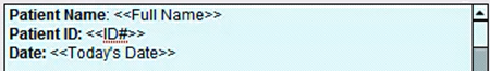 Use merge fields to add more customization to your content. In this example, I want my note to automatically include the patient’s name, their chart ID number, and their date of birth