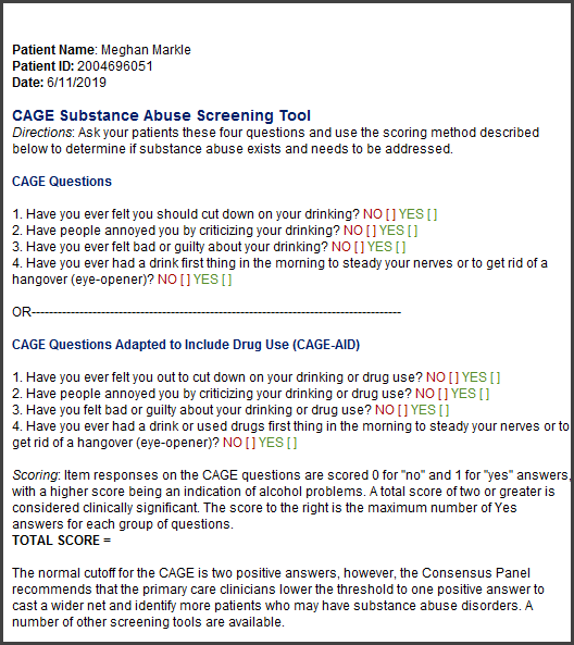 ICANotes has an extensive list of public domain behavioral health assessment tools built into our program. We have many custom forms and assessments available through the button from an individual patient's Chart Face. To see a complete list of all ...