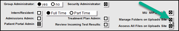 5. Once on the user's settings, click the "Manage Folders on Uploads Site" field to toggle on.