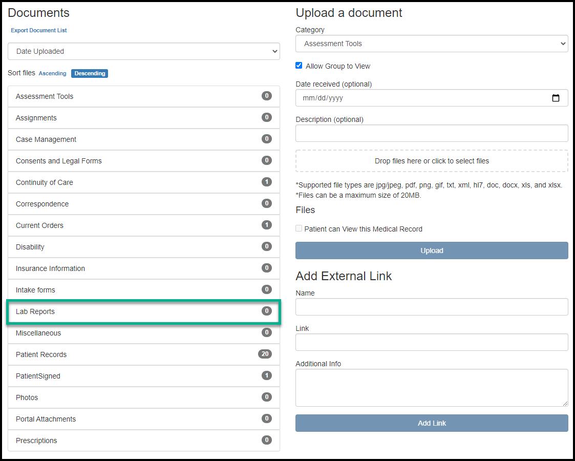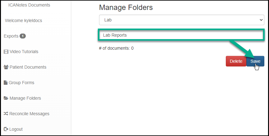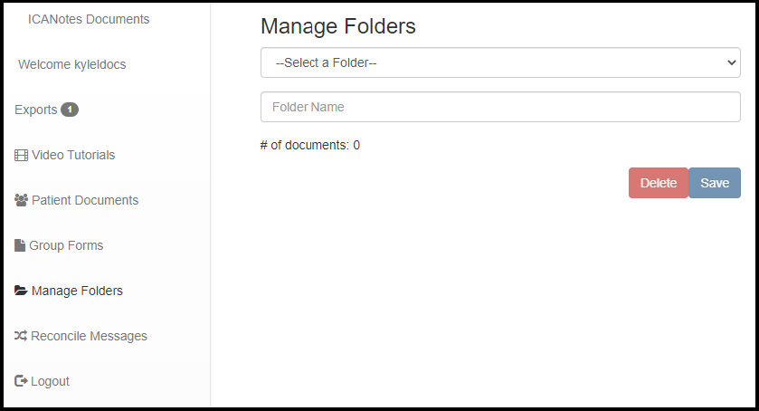Users given permission to manage folders will be able to edit, add, or delete folders from the Upload Site. These folders will be able to be used to filter results on the Documents page within ICANotes.