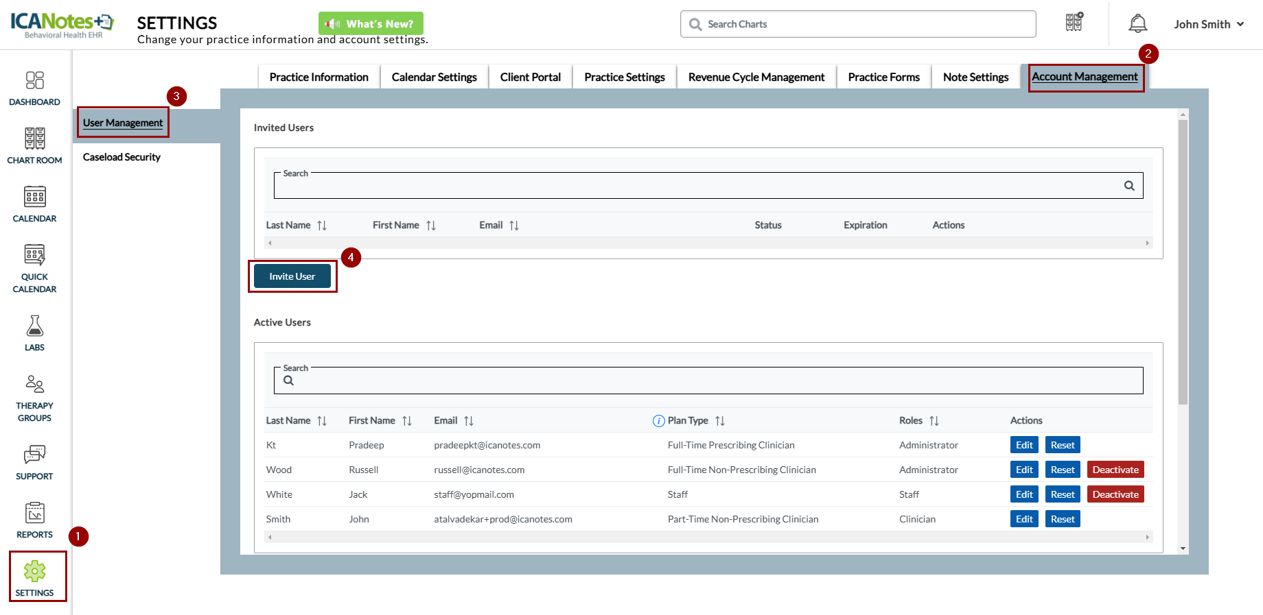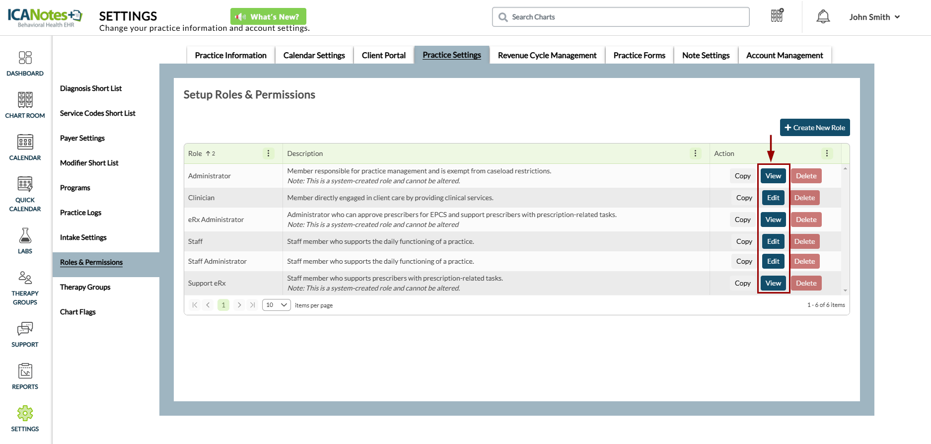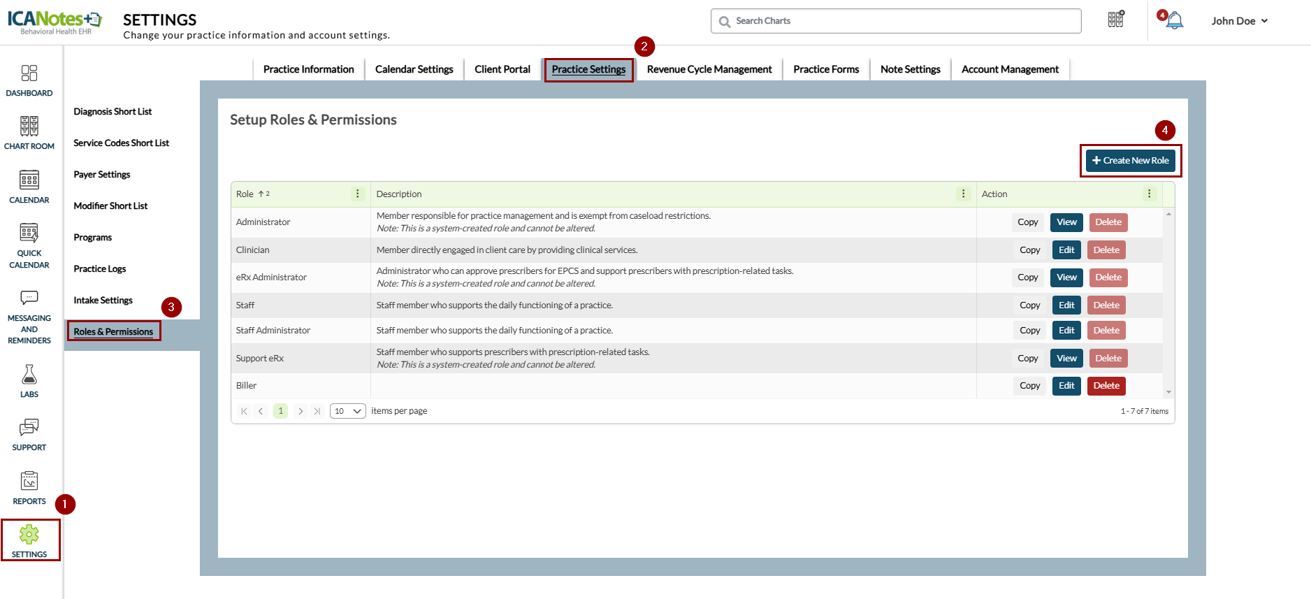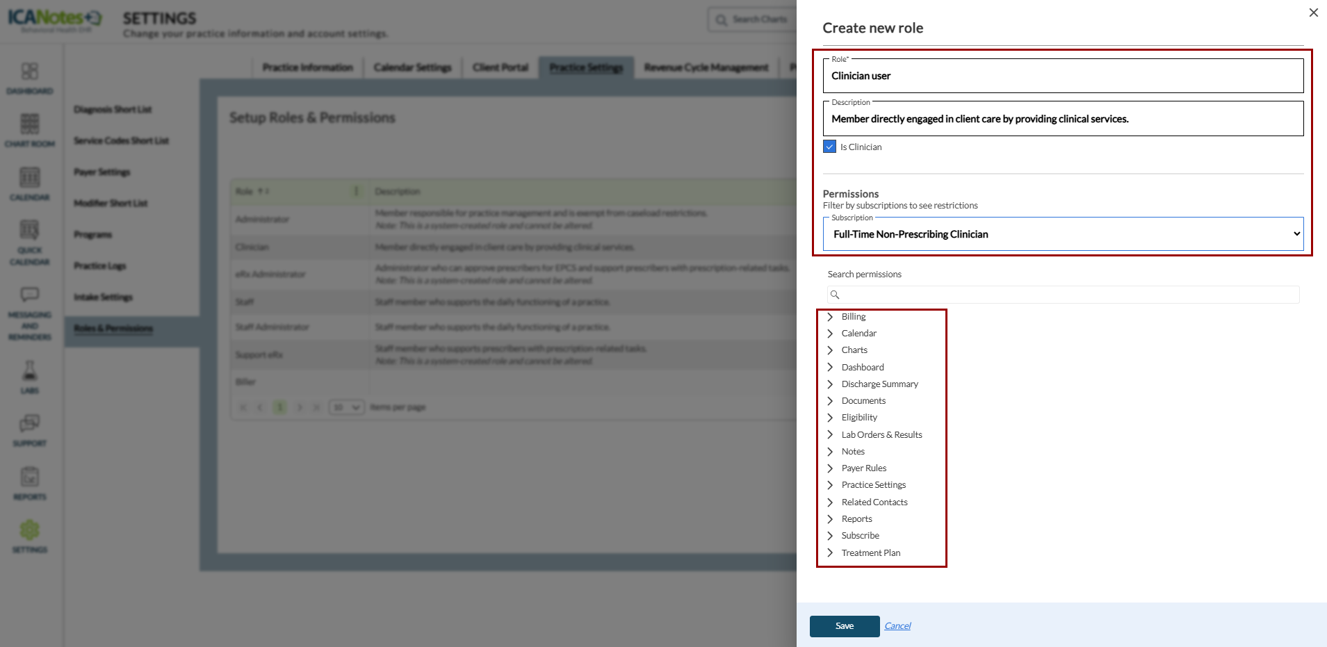This guide outlines the steps for managing roles and permissions in ICANotes+. Roles determine the actions users can perform within the system, based on their assigned permissions. You can also duplicate existing roles and customize their permissions to create new ones. Note that roles assigned to users cannot be deleted.