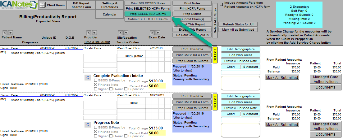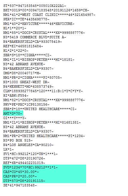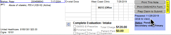 Once prepped, you can easily check the ANSI to ensure the Coordination of Benefits is present. Click the prepared box to view the claim.