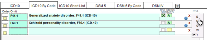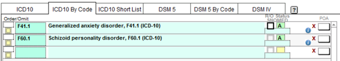 You may set one more diagnosis/es as Rule Out (R/O) by checking the R/O box to the right of the diagnosis, as well as set the SNOMED status by clicking in the dropdown field (set to Active by default) and provide a POA (Present on Admission) code.