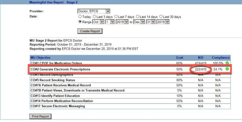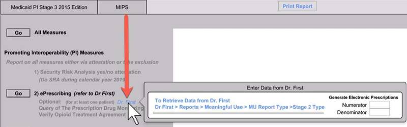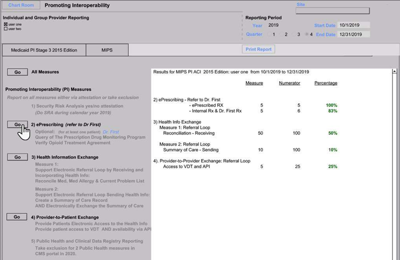 Click the Go button to see the results for the ePrescribing measure.