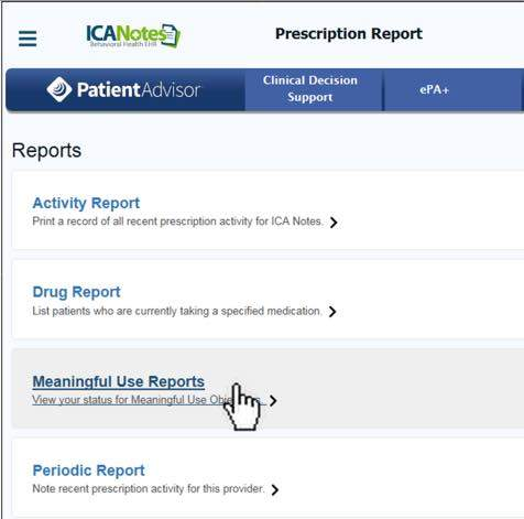 Under Reports, choose the Meaningful Use Reports link.