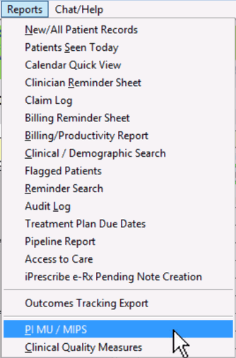 Reporting will be available from the Reports menu bar and choosing the PI MU / MIPS from the dropdown menu.