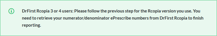 If you have obtained the numerator and denominator numbers from the DrFirst Measure Report (Rcopia 3) or DrFirst Measure Report (Rcopia 4) instructions, follow these instructions: