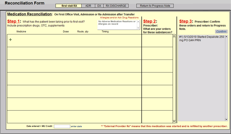 No medications to reconcile? If no medications enter the date on the bottom left of the screen. See the example below.
