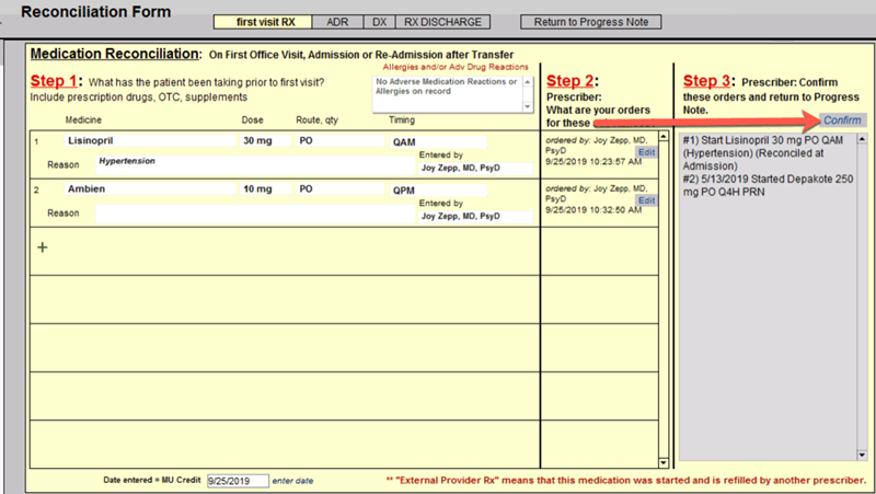 No medications to reconcile? If no medications enter the date on the bottom left of the screen. See the example below.