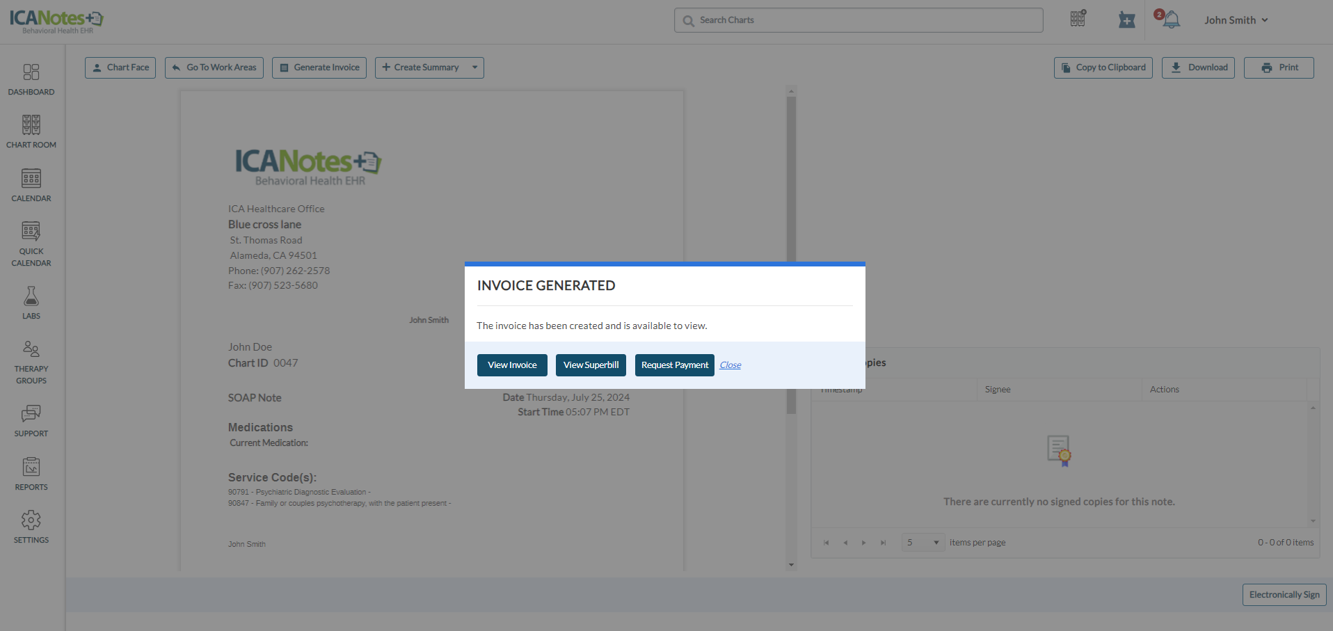 The following screen will be displayed. You can view invoice or superbill as desired.