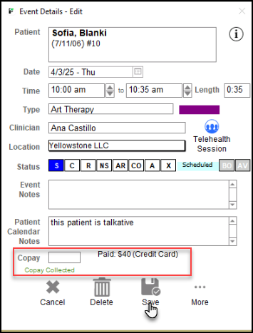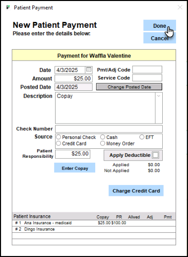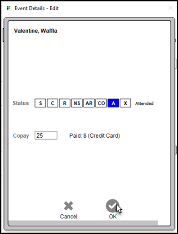 2. Click on the pencil icon for the patient that you want to document the copay.